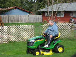 ![]() Breakfast with Dale & Cathy Withey in Sequim, Washington (July 2014). | ![]() EN Dale Withey at right on the stern of LCPL. |
